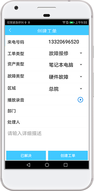 提供傳統(tǒng)電話值班臺和手機值班臺報修方式,獨創(chuàng)的手機值班臺讓你隨時隨地創(chuàng)建工單,輕松解決故障。