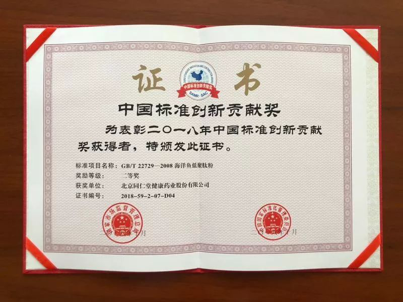 近日,國家市場監(jiān)督管理總局和中國國家標準化管理委員會共同設立的中國標準創(chuàng)新貢獻獎2018年獲獎名單正式公布。由同仁堂健康藥業(yè)集團首席科學家、總工程師、副總經(jīng)理張宏博士為主要起草人的“GB/T 22729-2008 海洋魚低聚肽粉國家標準”獲中國標準創(chuàng)新貢獻獎。
