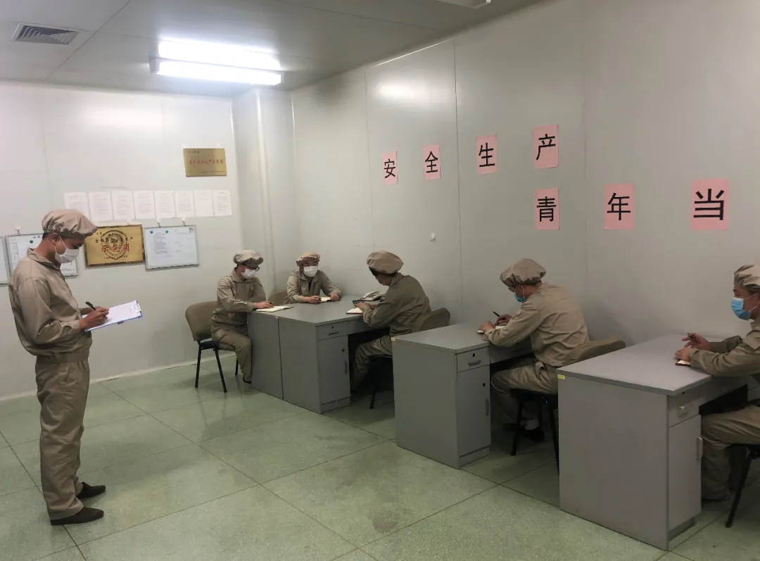 ▲疫情防控青年突擊隊---生產(chǎn)前的晨會,部署工作任務