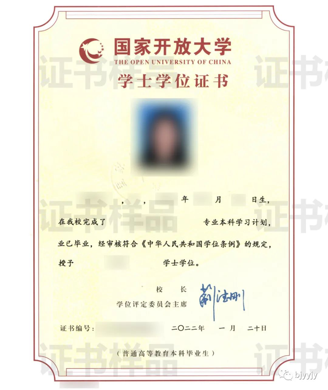 學(xué)位證書樣本