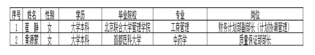 根據(jù)《北京同仁堂供應(yīng)鏈管理有限責(zé)任公司招聘工作方案》,通過網(wǎng)上發(fā)布公告、簡歷篩選、資格審查、面試、筆試、人事檔案核查等招聘環(huán)節(jié),經(jīng)供應(yīng)鏈公司黨支部會(huì)議審議通過,擬招聘以下人員,現(xiàn)公示如下:
